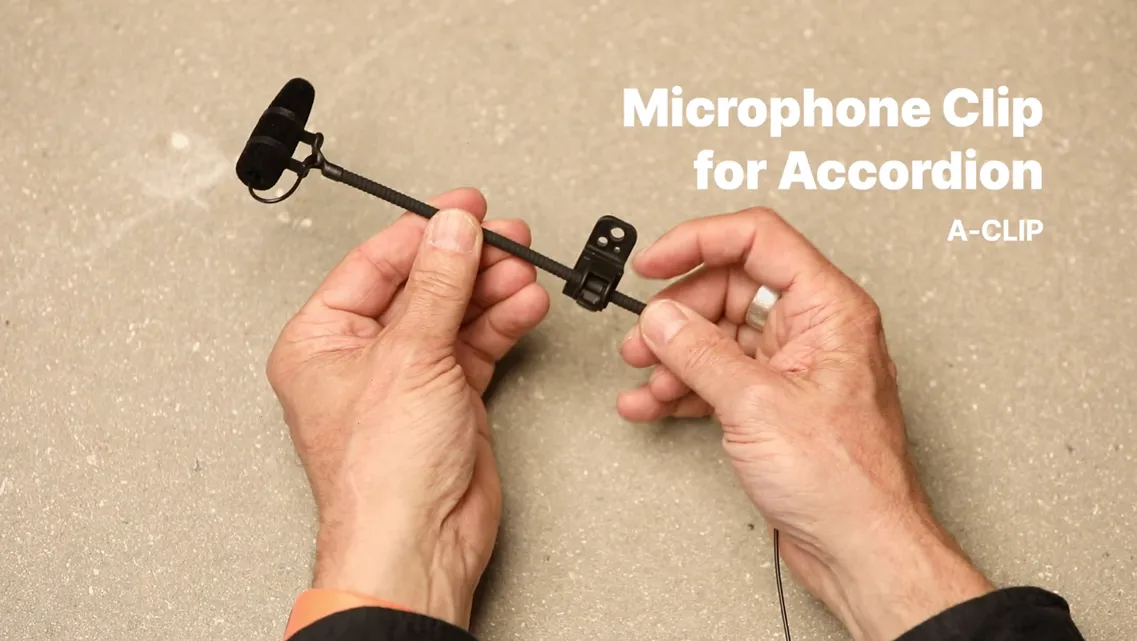 Az A-CLIP segítségével a felhasználó 4099 CORE+ hangszermikrofont rögzíthet harmonikához. Ha szükséges, a mikrofoncsíptető csavarokkal tartósan rögzíthető a hangszerhez.
